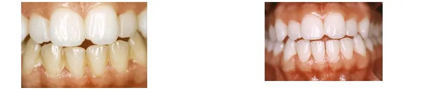 Resultado tras la limpieza y blanqueamiento de sólo la arcada superior y posteriormente de la arcada inferior completando el tratamiento.